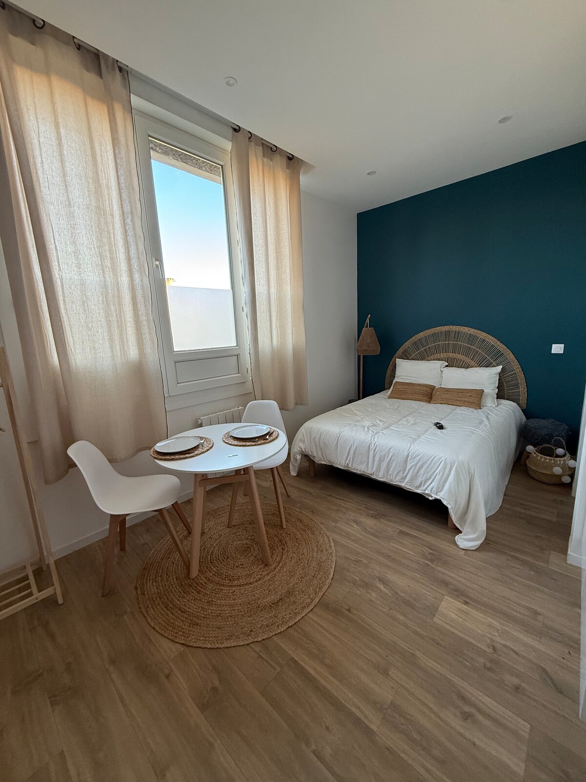 🏡 Welcome to our little cocoon, quiet, with terrace and private garden. 🍇 Ideally located between the city, sea and vineyards, our small two-room apartment offers modern comfort and a warm atmosphere, with a cozy bedroom and a living room equipped with a 4K home theater, Netflix, Prime and Disney+ for your relaxing evenings (popcorn machine included!). 🏰 An ideal base from which to discover Bordeaux, the Médoc vineyards or simply to rest for a few days.
