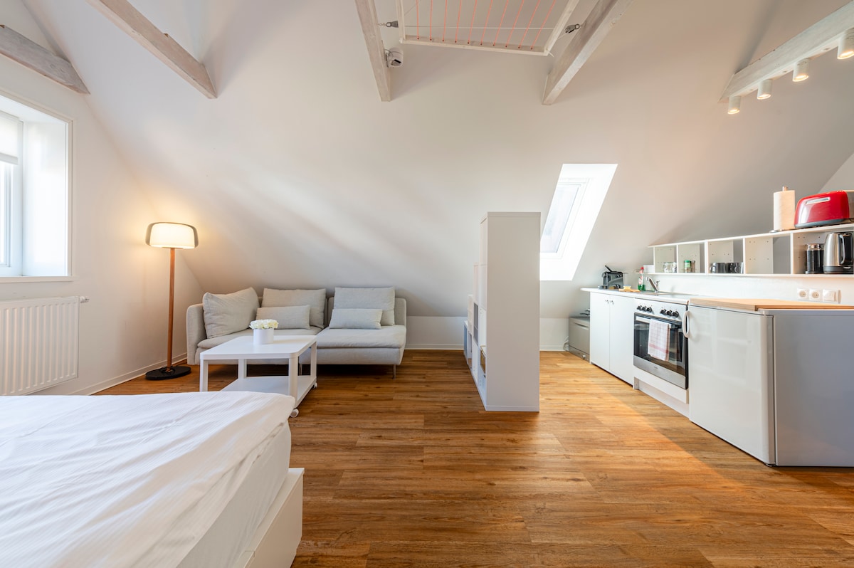This sounds like a charming basement apartment in an attractive location! The proximity to the historic old town of Verden Aller is certainly a great advantage, as you can quickly reach the amenities and atmosphere of the city. The living and sleeping area as well as the small kitchen niche offer a practical and cozy living atmosphere. The bathroom with shower and washing machine is also very practical and increases comfort.