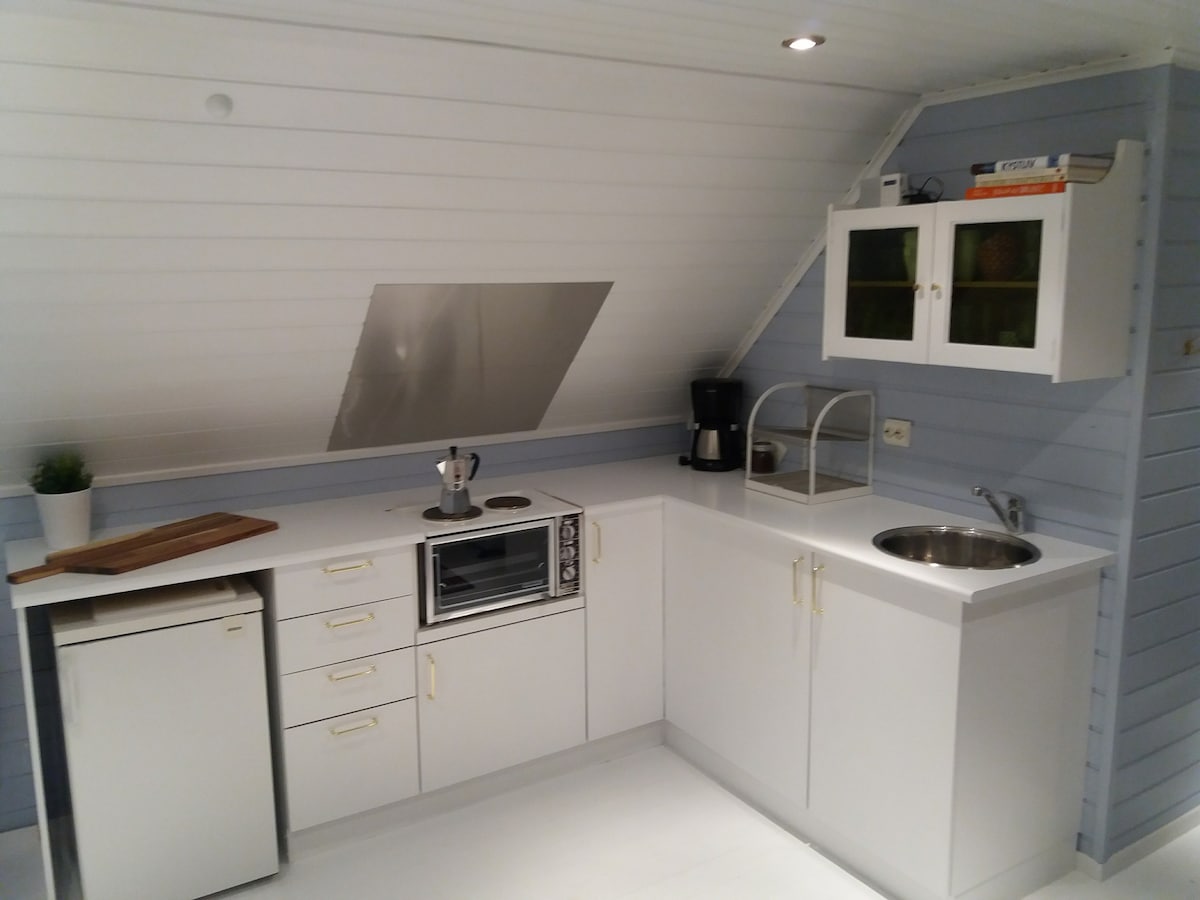 Fully furnished garage loft (32 sqm) rented out at Kvannes in Høvåg. The property is idyllically located near the lake. Swimming and fishing places, hiking areas etc. are only a few minutes walk away. Blindleia is located 700m from the property. It takes 12 minutes to drive to the zoo, 20 minutes to Lillesand and 22 minutes to Kristiansand. The garage attic has 2 bedrooms, bathroom, kitchen and living room with dining table/chairs. In the living room there is a Hemnes day bed with good mattresses (2 beds). Max 6 pers.