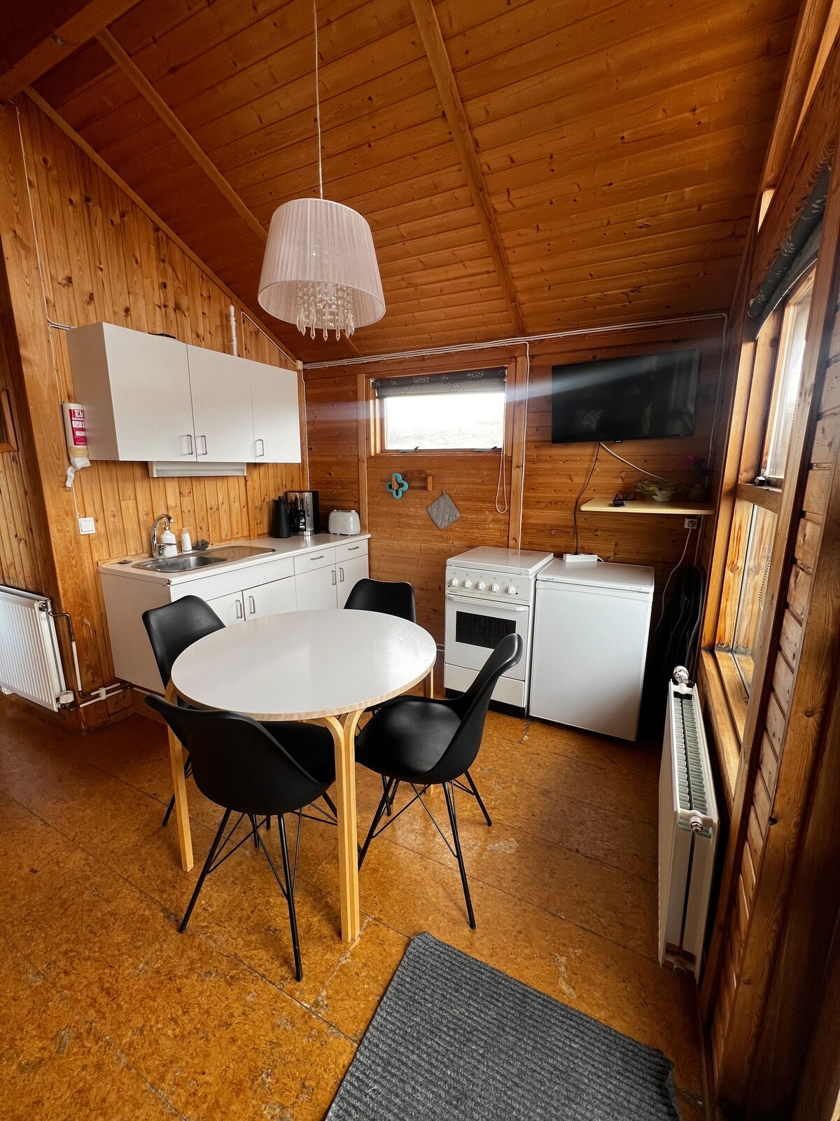 Welcome to Langaborg Guesthouse, a recently built hidden gem with a unique view over Sauðárkrókur (7km away). This tranquil retreat features one bed and a sofa bed, ensuring a cozy stay. The fully equipped kitchen invites you to savor the freedom of self-cooking. Immerse yourself in comfort, privacy, and the breathtaking beauty of the surrounding nature. Langaborg Guesthouse is the perfect getaway for those seeking relaxation, comfort and enjoyment.