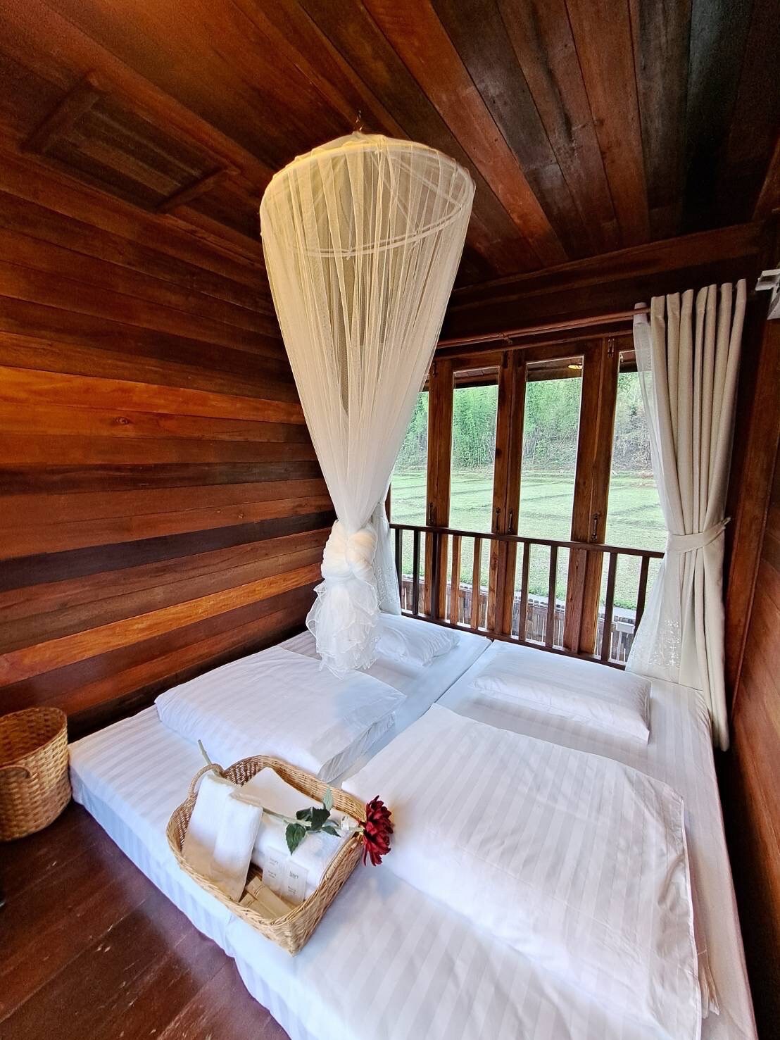 Premium muji-style resort in the middle of a valley. The front view is a rice terrace. Behind is a flower garden. There is a cafe. The resort has the most beautiful view of the rice terrace in Nan. The weather is cool all year round. Fully equipped with air conditioning, water heater, outdoor bathtub, en-suite bathroom. Perfect for relaxing and very private.