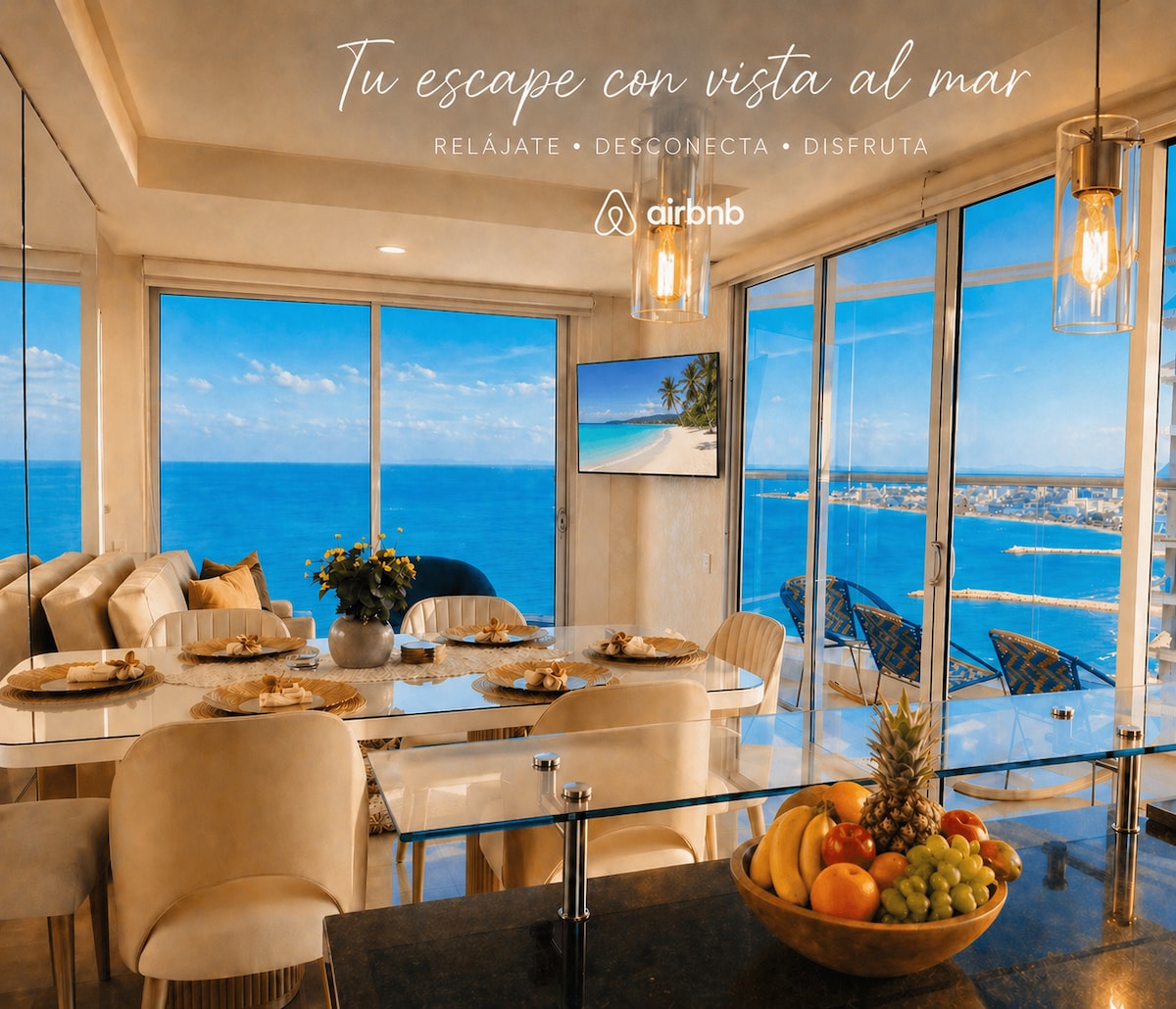 It's an apartment with excellent ocean views, family atmosphere The building has a swimming pool and jacuzzi It is a residential building with 24-hour concierge and surveillance service. It has an elevator and parking. Supermarkets such as El Oriente, Olímpica, D1, and Ara are 2 kilometers away from the building. The cost includes a person who provides cleaning support, and cooks from 8 am to 4 pm. Maximum Guest Capacity 8 people (including children)