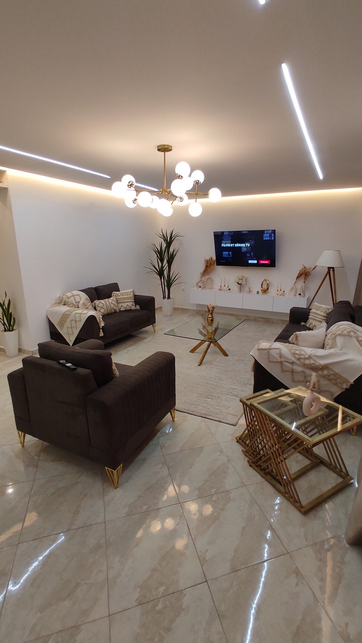 Détendez-vous dans ce logement calme et élégant. Découvrez cette magnifique villa située au sein d’une résidence calme, paisible et entièrement sécurisée avec gardiennage. Un véritable havre de paix idéal pour se détendre en famille, Piscine pour profiter des beaux jours SPA Hammam & sauna Jacuzzi pour un moment de relaxation Jacuzzi pour une détente totale Equipement de sport Espace barbecue convivial pour vos soirées