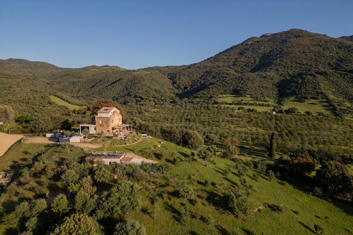 It is a stone construction, of the sheepfold type within an olive grove of 2 ha fenced with walls. You can enjoy next to a source of a private terrace, with exceptional views of the highest peaks of the island , an additional covered outdoor kitchen area with grilling plancha as well as an adjoining swimming pool. Bergerie " le figuier"