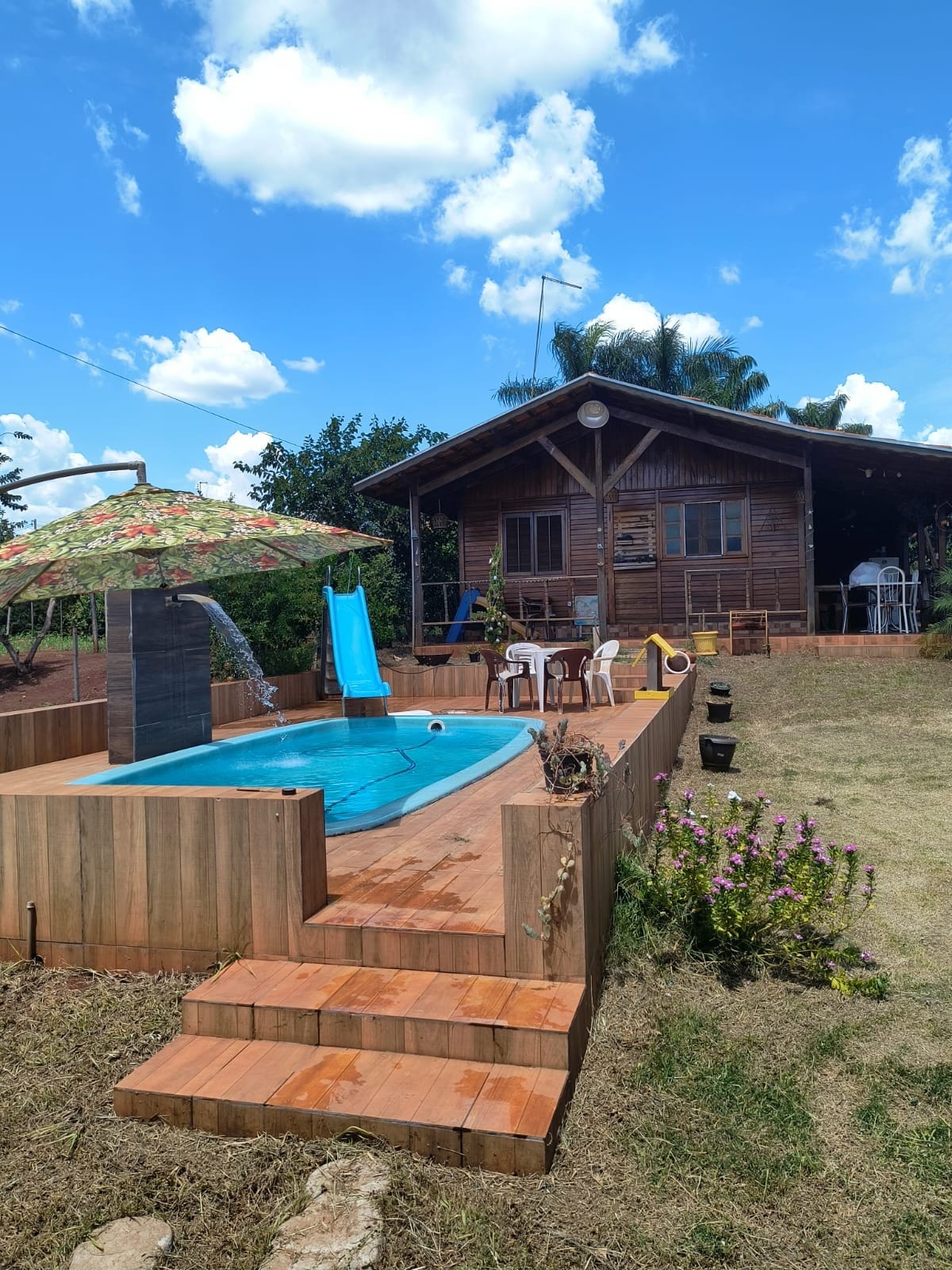 Impeccable, comfortable and spacious ranch for you to enjoy and have that weekend barbecue with your family and friends! Swimming pool with waterfall and whirlpool, complete gourmet space with cooktop stove, sugar, inverter refrigerator, beer maker, barbecue, microwave, electric fryer, blender, utensils, 55-inch SmartTV, Wi-fi, table with 8 seats, island with 6 stools, 2 wooden tables with 4 chairs each, 1 double bed, 1 bunk bed and 1 wardrobe.