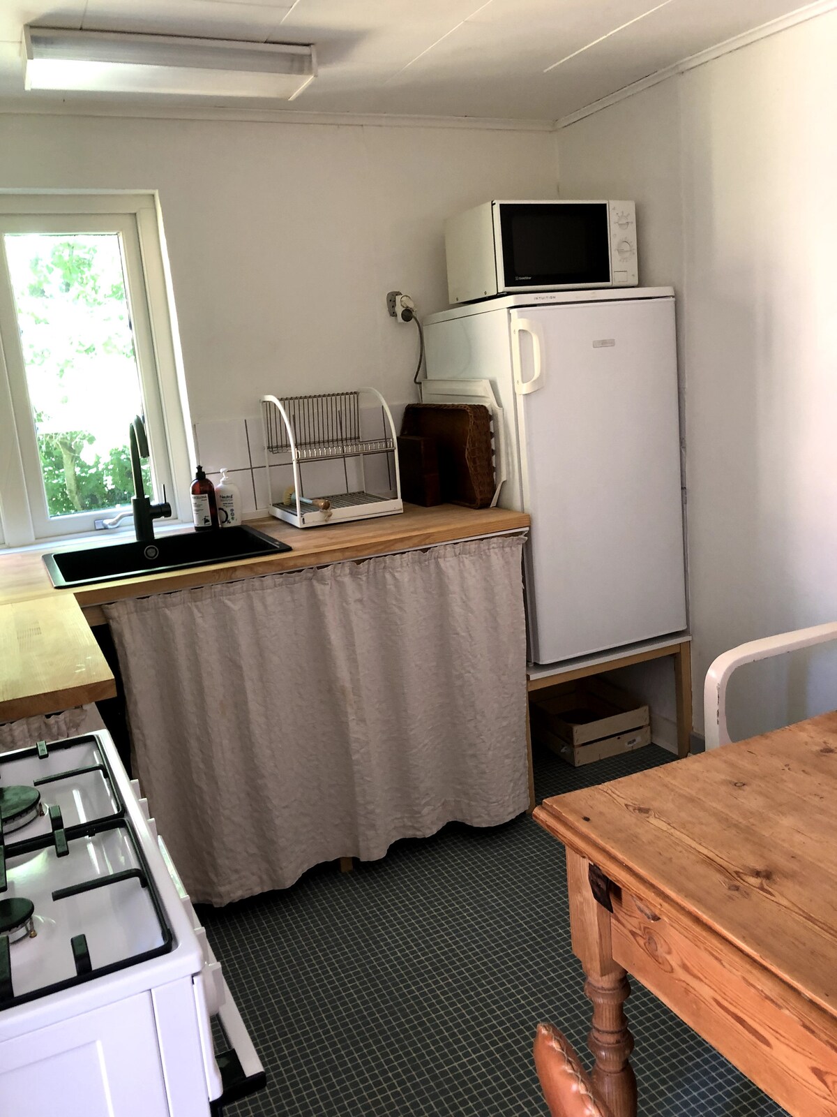 Cabin with 2 beds, a double bed and sofa bed. Possibility of tent and caravan. Ideal for bike rides or just a base, a place to sleep. Far from public transportation, With bed linen, towels and access to toilet, shower in the main house. Washing machine and dryer in the main house by appointment for longer stays - there is running water in the cabin, however, dry toilet as an emergency toilet. Cats and a duck in the yard, pure idyll. Possibility of barbecue, close to forest and central on the island.