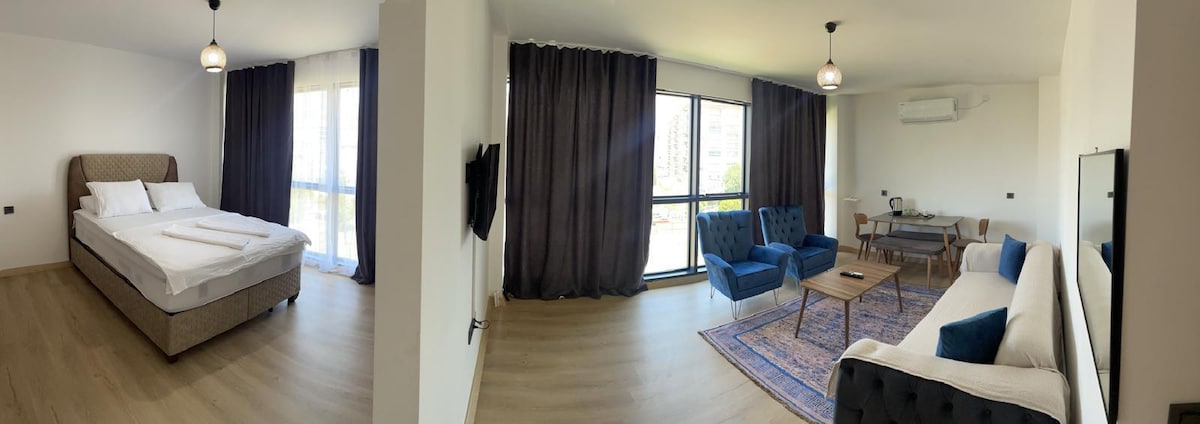 Comfort and elegance come together in the heart of the city! Experience the comfort of your home with 55” TV, Netflix, high-speed internet and fully equipped white goods in my 1+1 modern apartment. Only 5 min walk to Küçükpark, Ege University Hospital, Bornova Square and metro 1 minute away from Aşık Veysel Park and 1 minute away by car from the freeway entrance. A peaceful stay awaits you in fun and social life!