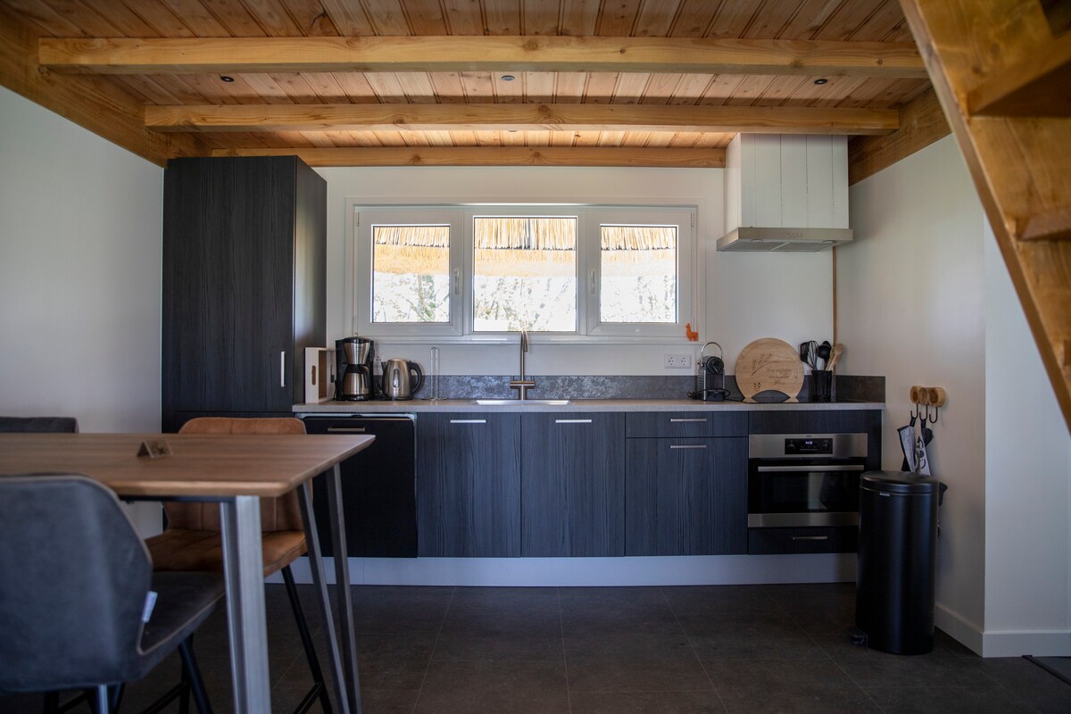 Ultimate tranquility and relaxation, the vacation feeling. You can discover this here in the middle of the "Zak van Zuid-Beveland". An area characterized by the winding flower dikes where you can enjoy cycling and walking. And then return to the tiny house. A luxury cottage where all the amenities are provided for a comfortable stay. Stroll in the nature park over the duckboards, shell paths or through the tall grass where you can encounter hares, pheasants and sometimes a roe deer.