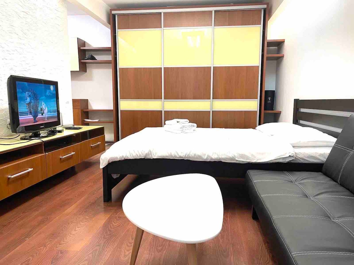 Hi there! My name is Julia and I am excited to welcome you at my brand-new designer apartments (32 sqm) in Kiev. I am pleased to share with you this stylish contemporary apartment features an open-concept layout, wood surfaces, and tasteful decor. Here you can find everything you might need for your stay - high quality bed linen, hairdryer, iron, bath accessories and more. Feel free to start your day with a cup of a lovely coffee or tea of your choice as a compliment for your stay. Welcome home!