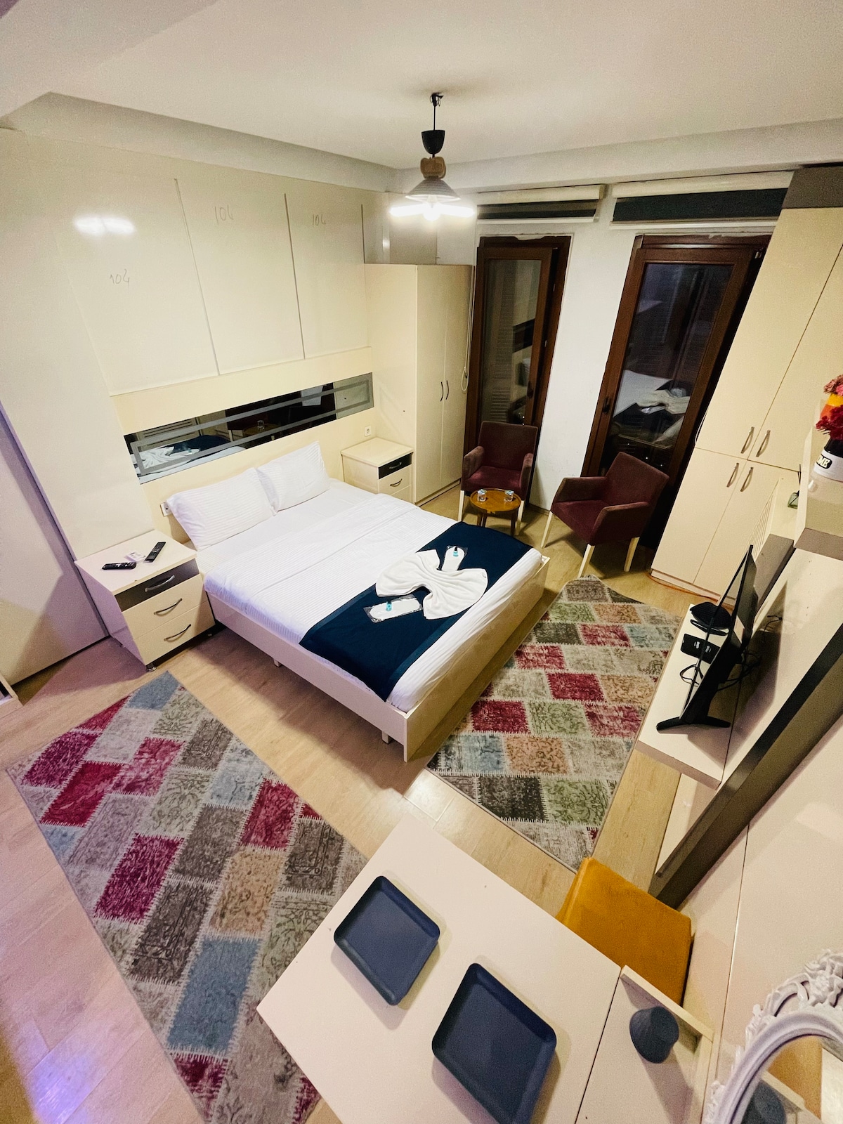 This charming hotel apartment offers a unique blend of simplicity and elegance with its modern, refined design. Perfect for two people or a couple, it includes a comfortable double bed, a well-equipped kitchenette, a private bathroom, and a 40-inch smart TV. Large windows . Ideally located just steps from Ortaköy Coast, Bosphorus Bridge, famous kumpir and waffle shops, and the historic heart of Ortaköy in central Istanbul.