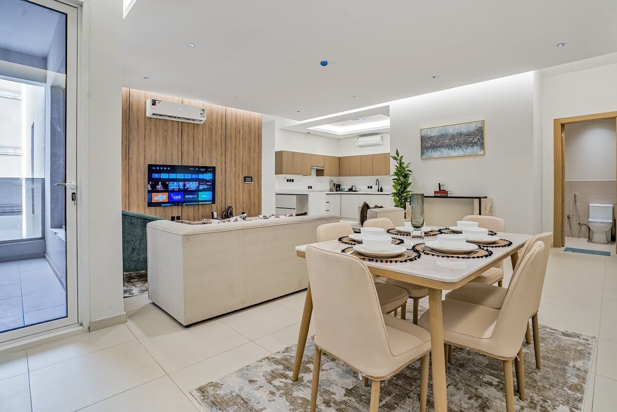 Enjoy an upscale stay in a modern apartment located in the heart of Hittin, one of Riyadh’s finest neighborhoods. The apartment is carefully furnished for maximum comfort, featuring elegant furniture and contemporary touches. 📍 Location: Minutes from Boulevard Riyadh, Sports Boulevard, Kingdom Arena, top malls, and fine dining. ✨ Features: • Modern, comfortable design • High-quality bed and linens • Smart TV & free Wi-Fi • Fully equipped kitchen • Self check-in • Free parking