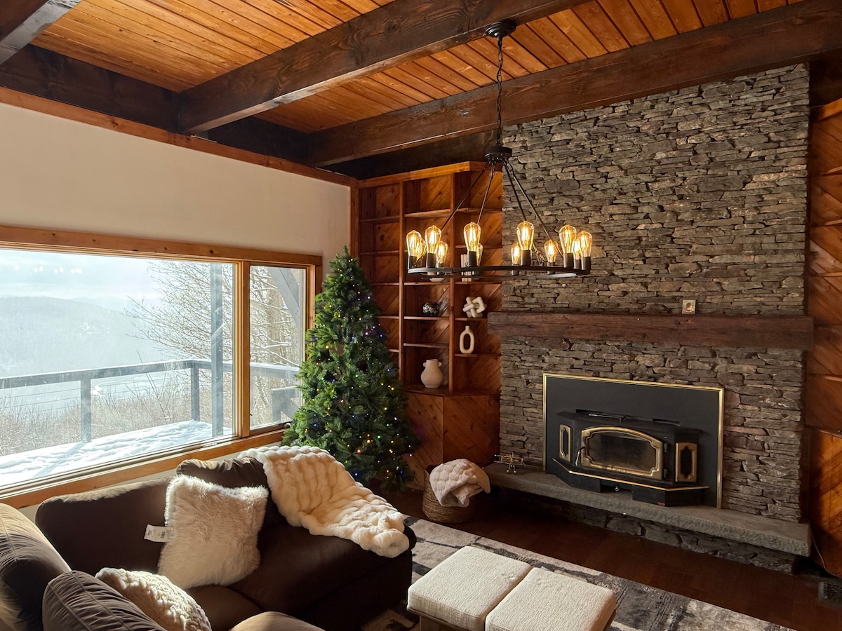 Welcome to Fox Ridge Chalet! Minimum age to book 21. A newly renovated, stylish log cabin nestled on 7 private acres above the village of Margaretville, in the heart of Catskills Park. Though the home is secluded, offering spectacular mountain views and total privacy, it’s just a three-minute drive to Margaretville’s restaurants, shops and galleries and under ten minutes to Belleayre Ski Resort as well many other local attractions.