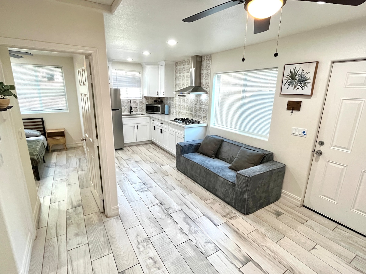 Experience a blend of modern and comfort at the center of the Inland Empire in Riverside CA in a new private studio. Plenty of space and it is perfect for families, business travelers and nurses. With a queen size bed, queen size sofa bed, and a workspace. Featuring a full bathroom. -Microwave, small conventional oven, coffee maker, stove and Ninja smoothie blender -Coffee, creamer&filtered water -Bathroom essentials provided -Netflix, Disney Plus, and Amazon Prime -Wi-Fi -Washer/Dryer in unit