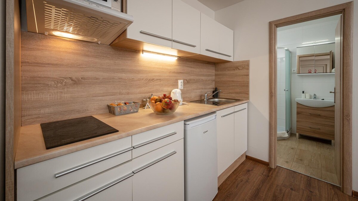 The 2-storey duplex apartment with kitchenette and private terrace with garden furniture is suitable for max. 2 persons (2x single bed + sofa). It is located in a quiet and safe location in the middle of nature, close to Bratislava. The accommodation offers: - Max. capacity: 2 people - Kitchenette: microwave, kettle, fridge, basic kitchen equipment, washing machine - The apartment is located in the new part of the Villa Ivica complex with its own entrance for more privacy.