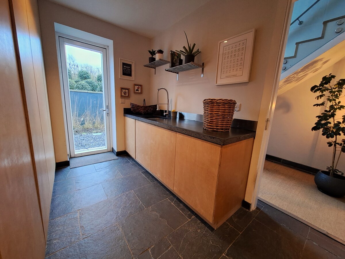 Large, modern-country , comfortable, peaceful, light filled, with small enclosed patio/garden space with outdoor dining, Dramatic, panoramic mountain and sea views. Best of both worlds as only 5 mins from quaint village of Enniskerry with its pubs and cafes and the world famous powerscourt gardens, house, waterfall. 5 mins from Avoca hand weavers in Kilmacanogue. 2 mins from djouce for woodland walks, bike trails etc. 10 mins from bray town. 30 mins from Dublin City. 45 mins Dublin airport