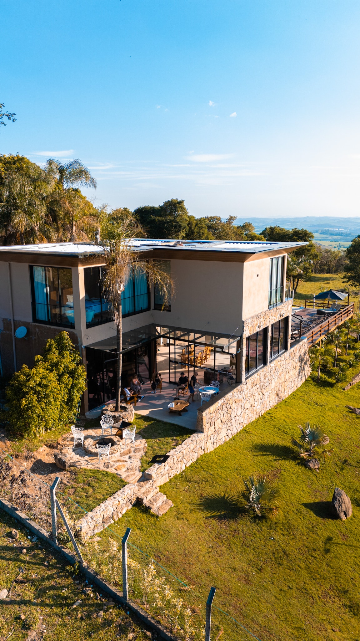 Casa do Lago has contemporary architecture and is literally on a lake, on a small farm on the edge of the dam. 2 en-suites, even bathrooms have a lake view, kitchen counter with differentiated utensils and good portable barbecue. Beach Tennis court, Stand Up paddle board, 4 kayaks and 4 bikes. Large pier on the dam, beach on the lake, hammock area, fixed location for a bonfire, waterfall, trails, large reforestation, pasture with dairy cattle, outdoor tables. Wi-Fi, SmartTV and Alexa.