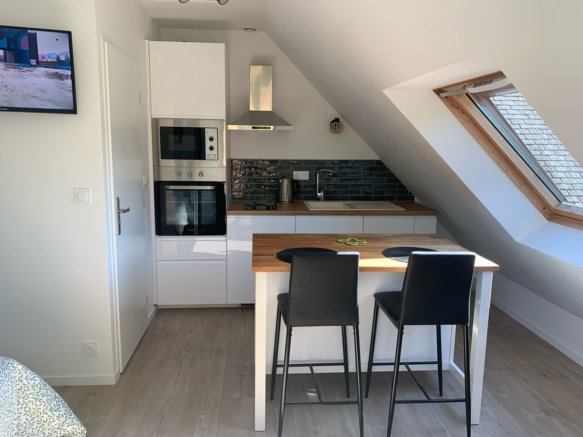 Relax in this peaceful and carefully decorated space. "Belles de Bretagne" offers this house located in the heart of the village in a small alley, adjoining that of the owners. You will have all the comforts, bed linen and towels provided It consists of a living room open to a terrace of about 20 m2, a bedroom with a 160 x 200 double bed, shower room, separate toilet. Free parking is available on the adjacent streets.