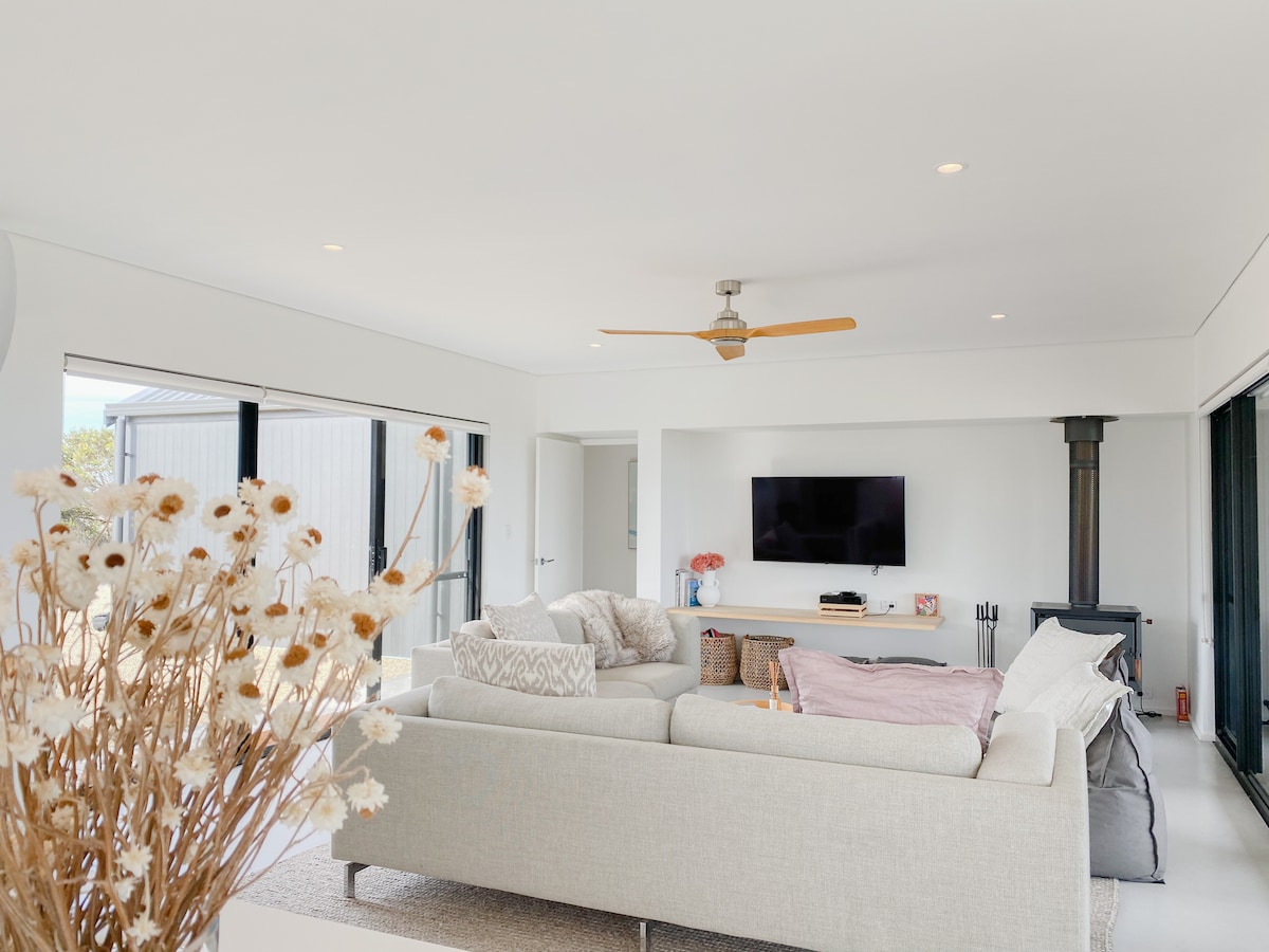 The Ridge is perched on 12 acres of Native Bushland with uninterrupted views of the Southern Ocean and provides luxury accommodation for up to 6 guests. The property is within walking distance of two of the areas most popular beach and surf spots, Blossoms Beach and Native Dog Beach. The solar passive design offers comfort all year round for family and couples alike, with open plan living and ample space for indoor/outdoor dining and a cosy wood fire for the winter evenings.