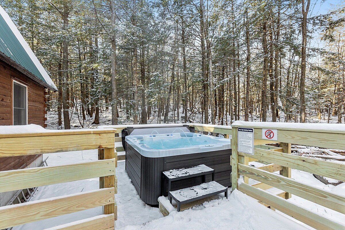 Escape to a serene log cabin retreat nestled on 3 private acres of forested land. This charming rustic cabin boasts a beautiful open-concept kitchen with modern appliances, a hot tub for stargazing, and access to Highland Lake with kayak and pedal boat provided. Perfect for a peaceful getaway or adventurous vacation. Relax by the solo stove out front and grill your favorite meals out back! Hiking nearby. Nearby N. Conway, mountains, hiking, kayaking, Saco River, Pleasant Mtn & restaurants!