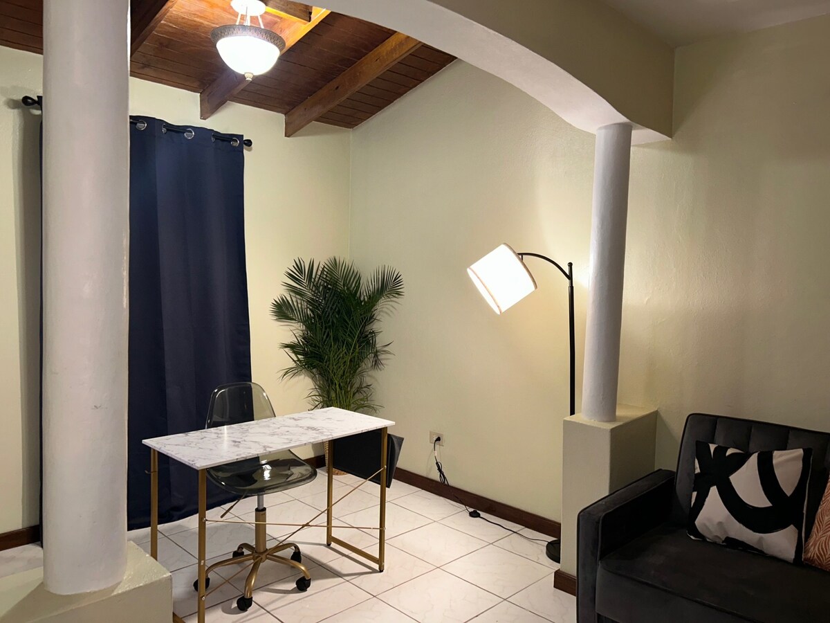 Casa Mia overlooks the beautiful capital of Road Town. This 1-1 condo suite offers a comfortable atmosphere to stay in during your visit to the BVI. This property is ideal for vacations and business trips. It is close to restaurants, shopping areas, and the ferry terminal. Utilities provided include electricity, Wi-Fi, hot water and gas. Kitchen area is equipped with a microwave, toaster, pots, glasses, plate set, and cutlery. We also offer a Smart TV and a smart lock entry system.