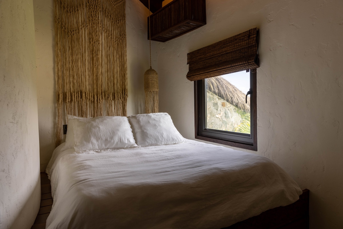 Experience the Blessing of Joy. Nestled within the main house, this queen‑sized retreat offers a refined sanctuary infused with the spirit of happiness, and overlooking lush island gardens and Higher Love Mountain. Between saltwater pool dips, indulgent spa rituals, and sunset beach strolls, every detail nurtures body, soul, and inspiration.