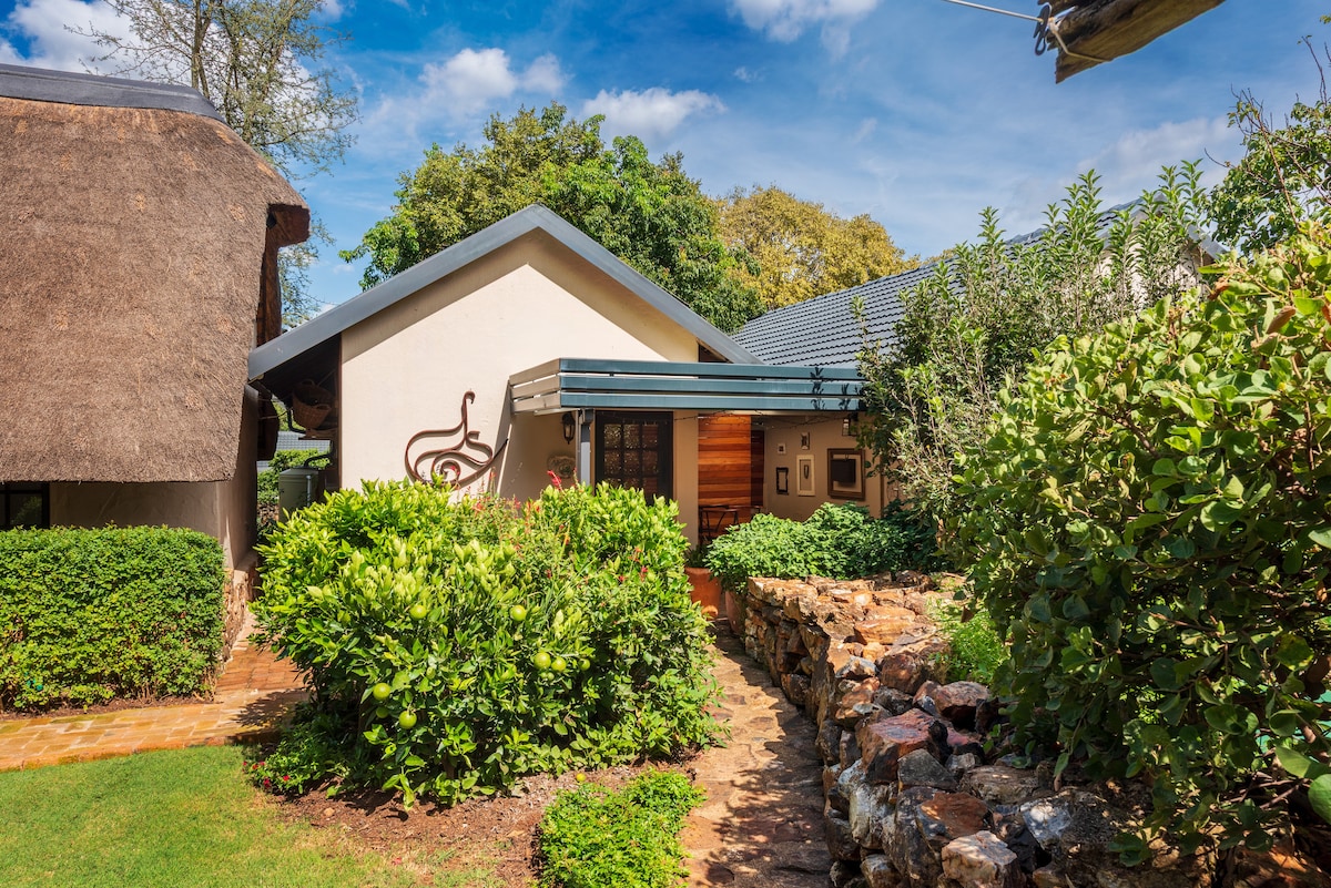 Spoil yourself in our well equipped private ,peaceful Ziggysriver cottage on the banks of the Magalies River. Plenty of birdlife plus the resident Finfoot. Wake up to the sounds of nature and explore the trail of +-9 km , walking, cycling or birding. Visit Sterkfontein Caves and the Maropeng World Heritage Site in the Cradle of Humankind. Enjoy a dip in the cold water splash pool on a hot summers day ( Note the splash pool is closed from 30 April- 30 September) or sit by the open fire .