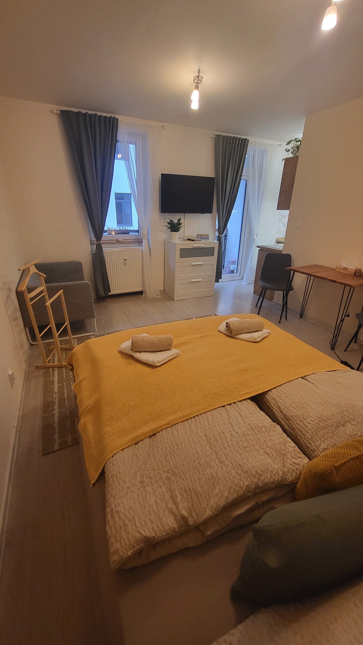 Nové studio Komfort III v centru Brna je malé, útulné, praktické, čisté zázemí pouhých 10 minut pěší chůze od hlavního vlakového i mezinárodního autobusového nádraží. Dobrá WiFi, prostorný balkon a jednoduchý styl. Díky své poloze je ideálním místem pro návštěvníky nejen historického centra moravské metropole. Chůzí 5 až 10 min. (Mahenovo i Janáčkovo divadlo, Dům umění, Náměstí Svobody, Zelný trh). PARKOVÁNÍ před domem v "zóně B" soukromé parkování ve dvoře za poplatek.