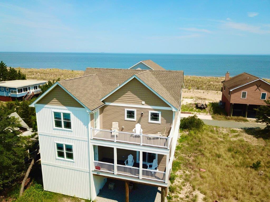 Beachfront home w/ unobstructed bay views. Your group will enjoy front-row seats to breathtaking sunrises & water views from the elevated LR and wrap-around deck. The expansive deck with grill & fire table is a great place to sip your morning coffee or gather for dinner & enjoy the unobstructed sights & sounds of the bay. Stay and discover what makes Broadkill Beach so special! Linens are not provided but can be rented from local linen companies.