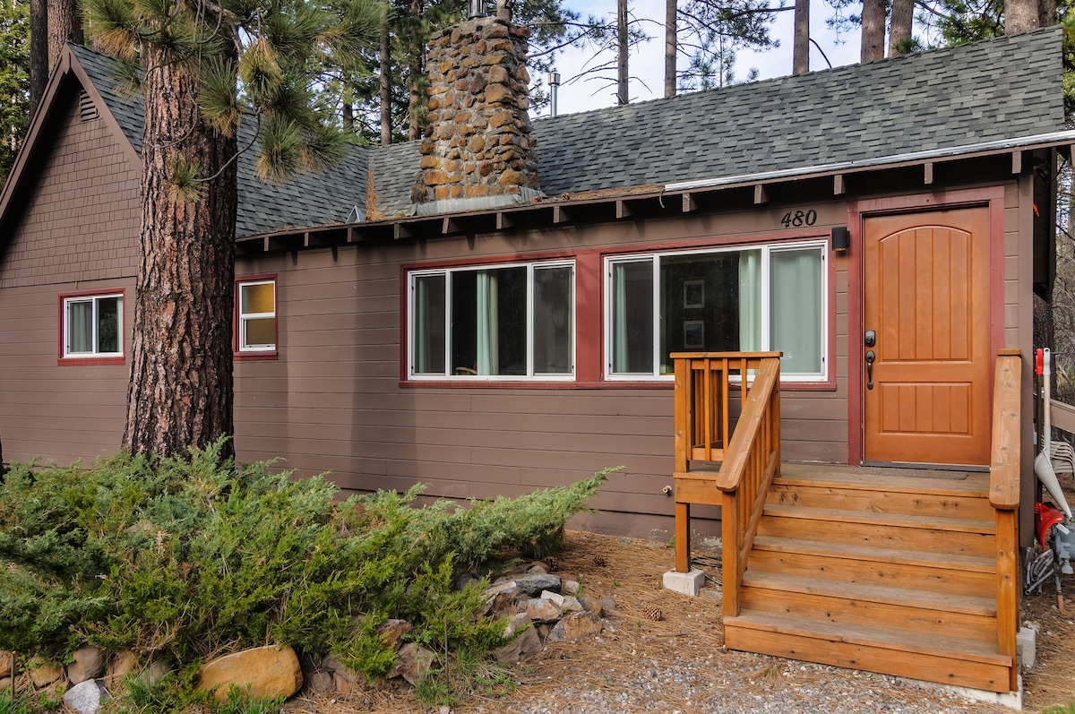 Enjoy our cozy cabin within walking distance to Lake Tahoe. Our cabin sleeps 5 and is fully stocked. The main room features a comfortable living space, fireplace and open kitchen with eating area. The first bedroom is the perfect place for kids with twin bunk beds. The master bedroom is spacious and has a queen bed and attached bathroom. This home is newly renovated and charming. It's the perfect place to unwind after a day at the lake or on the slopes. Minutes away from local ski resorts.