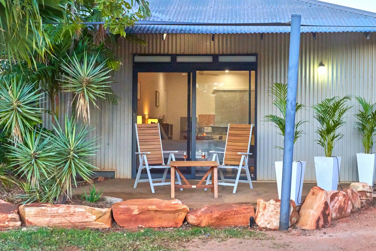 Discover a private oasis just a 10-min stroll from Cable Beach. Our fully self-contained studio features a queen bed, well-equipped kitchen, private bathroom, and washing Machine. Lounge in comfort with Netflix on your own TV. Enjoy the private pool and outdoor space. Ample fenced parking for cars and trailers. Ideal for couples or solo travellers. Book now for a perfect blend of comfort and convenience