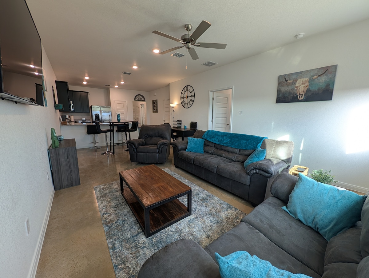 Almost 900 sq ft of VERY Clean, Very private, full kitchen, full bath, large bedroom, can sleep up to 4, 3 TVs, plenty of closet space, close to Baylor, Scott, & White. Tiled throughout, everything sterilized. Private entrance, plenty of parking for anything. Queen Bed, Full size Futon, and 2 couches. 3 seperate spaces. The unit is attached to the rest of the home but there is a door that separates it and locks from both sides. 10% discount on 7 days, 25% discount on 30 days.