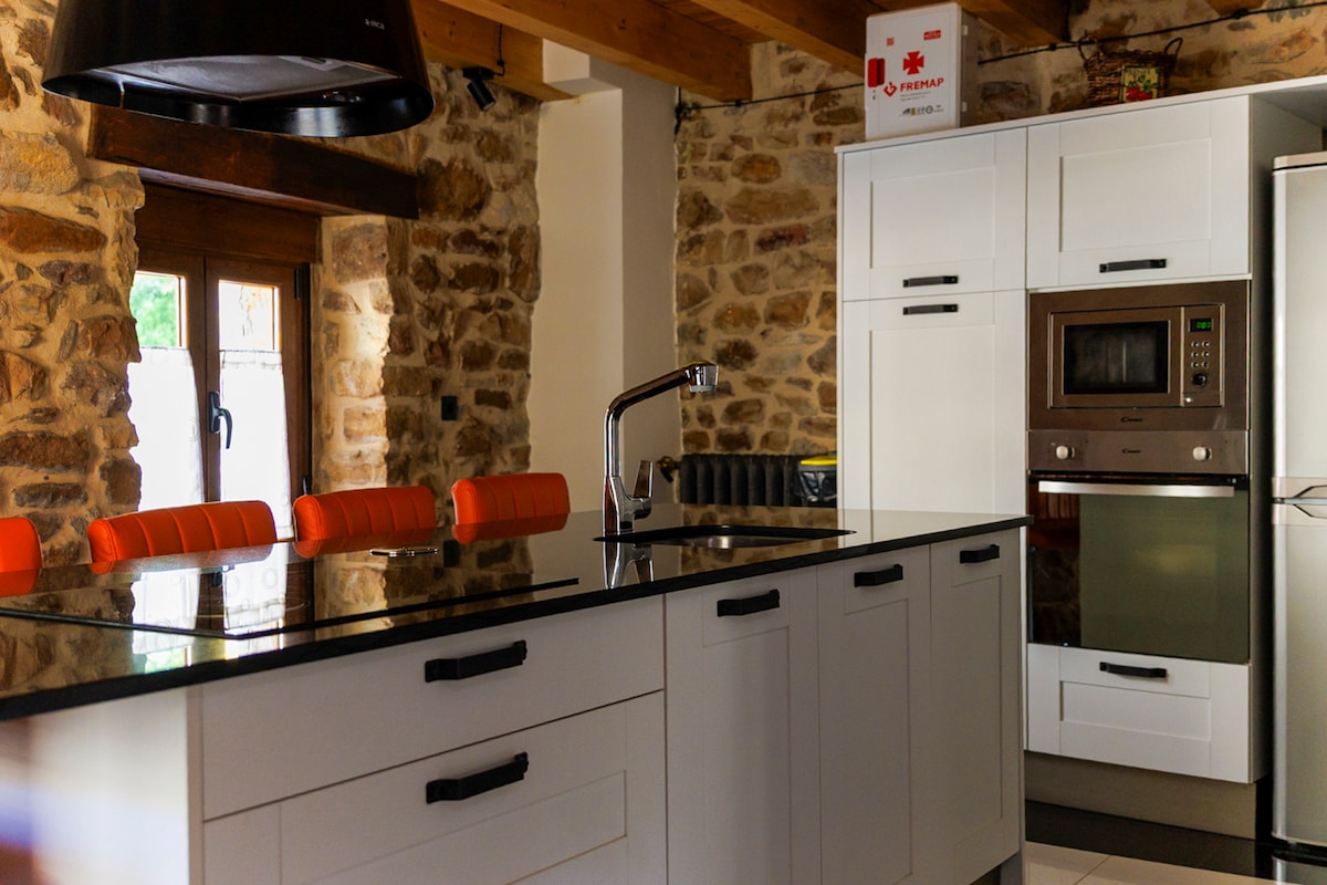 A small traditional Asturian house, restored with the utmost respect for its construction. Located in a high mountain area, very quiet, sunny and with beautiful views. For nature lovers, surrounded by hiking trails, if you are looking to disconnect, tranquility and relax in the middle of nature, it is the ideal place. Digital Nomads Welcome! Distances: Oviedo - 35 minutes (50 kilometers) Gijón - 45 minutes (60 kilometers) Fuentes de Invierno and San Isidro - 25 min. (20km) Beach - 50 min. (62km)