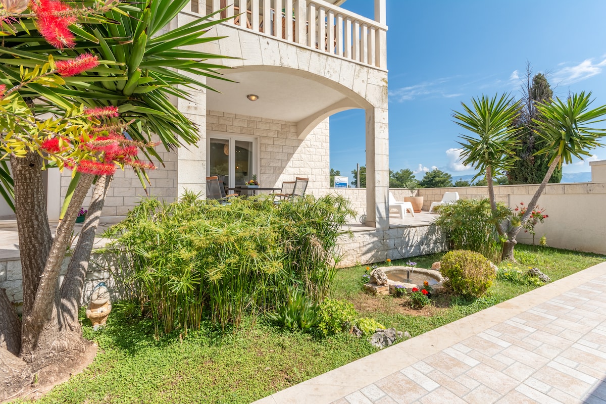 The holiday home "Gabelot" is located on the island of 𝐁𝐫𝐚𝐜, 3km away from the ferry port of 𝐒𝐮𝐩𝐞𝐭𝐚𝐫, in a secluded olive grove surrounded by 5000 m2 of fenced area ideal for children for a beautiful vacation in the countryside, but not so far from the sea. The property is situated 150 m from the main road, 2 km from the city centre and 450 m from the sea. On this beautiful plot, there are two small houses which can accommodate up to 7 people.