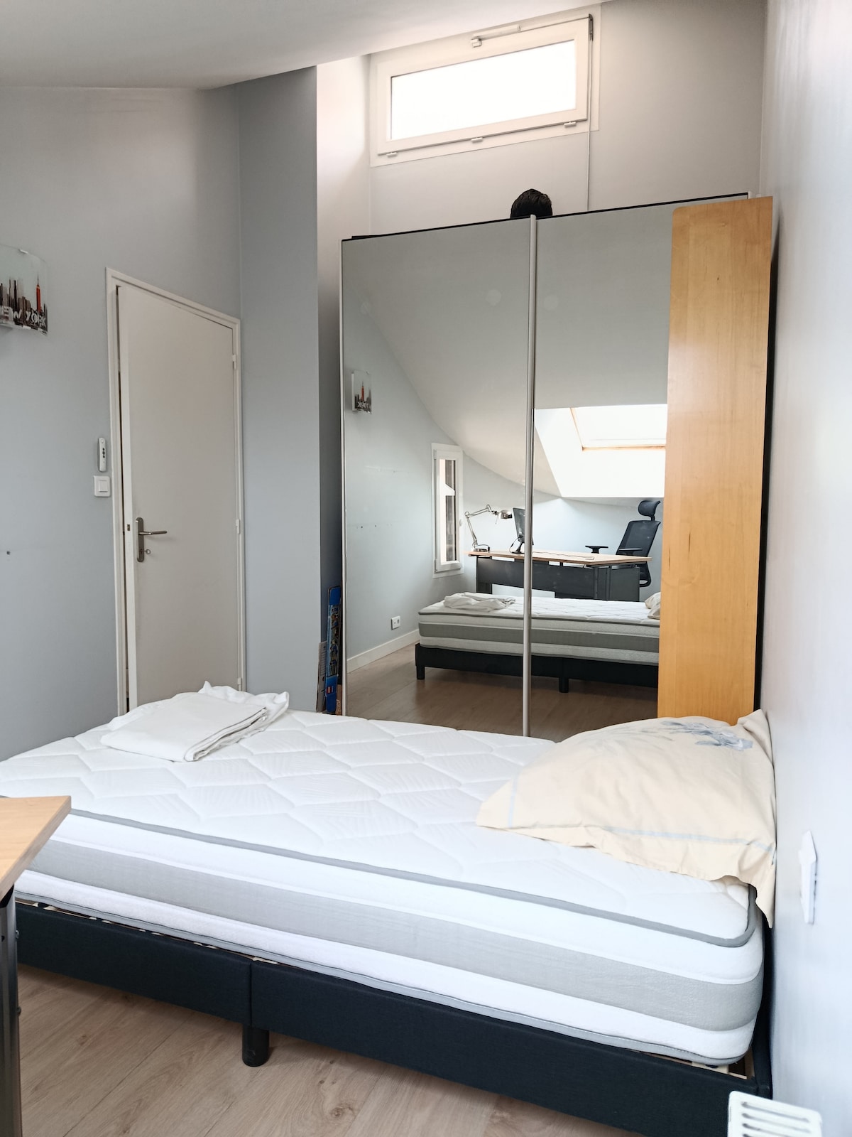 Hi , We offer a 27 m2 studio in the basement of our house. Access is independent. The entire place does not include any shared rooms. It is intended for 2 people. Quiet environment: the accommodation is located in a private cul-de-sac. Warning: - The screen visible in the photos is a simple screen for connecting your computer via HDMI. So there's no TV. - The living room/bedroom window has no shutter, only 1 blackout blind. We look forward to welcoming you!