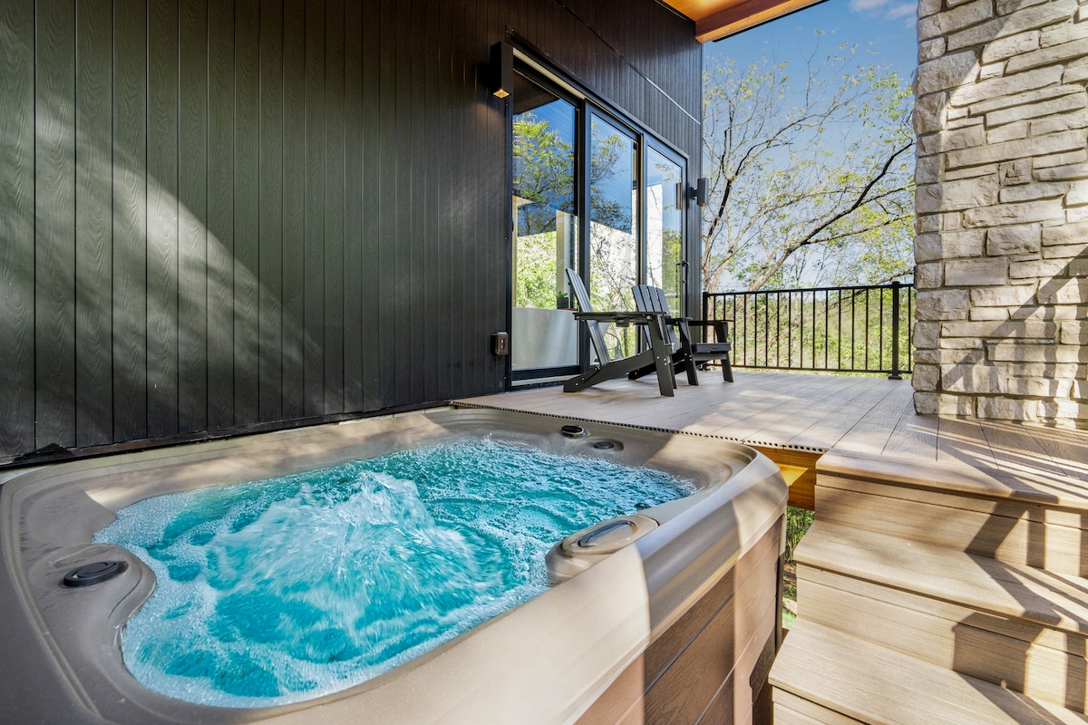 Escape to The Lodge at Marble Creek, a modern cabin tucked in the woods overlooking beautiful Marble Creek and its palisades. This 3-bedroom, 2-bath getaway sleeps 6 guests. Relax in the hot tub, unwind in the sauna, or enjoy a soak in the spa-style tub. Gather by the indoor or outdoor gas fireplaces, or end the night around the firepit under the stars. Just minutes from Nicholasville and Lexington, yet it feels like you’re deep in the Gorge — peaceful, private, and surrounded by nature.