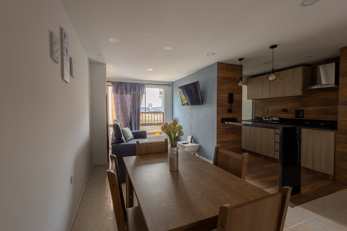 Spectacular high-rise apartment with excellent city views (sunrise and sunset), fully furnished with everything to provide our guests with all the comforts, an ideal and safe location to get around in Bucaramanga. -Hot water -High speed fiber optic internet -50" TV (with Wi-Fi) -Microwave oven - Washing machine -Fridge - Iron - Fully-equipped kitchen. 24-hour surveillance. You also have: - Private covered parking - CCTV - 2 Elevators
