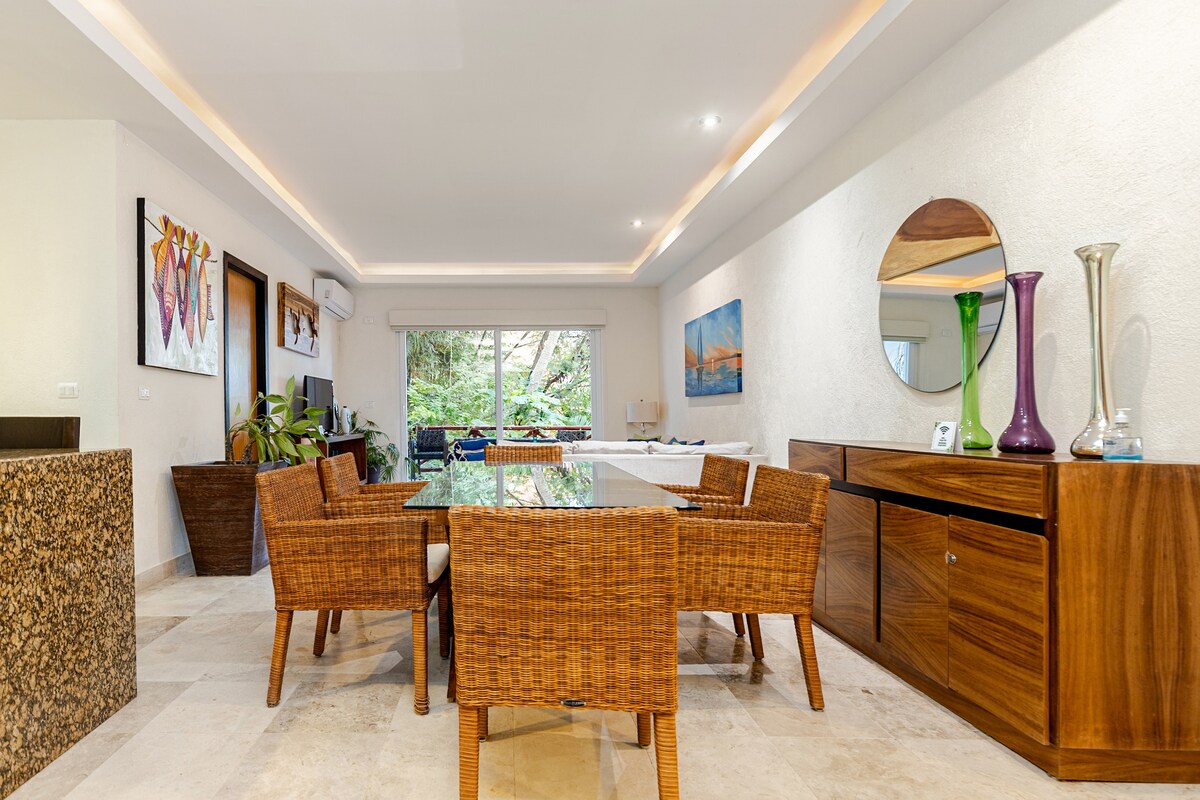 Between jungle and sea, a dreamy corner, where the sun and breeze have conspired together. Two bedrooms in boho maritime style, where luxury and calm form a rhythmic aisle. The master, with its king-size bed, promises soft dreams and a pleasant head. The second, with twin beds aligned, invites restful sleep with doors open wide. A private pool, surrounded by green, reflects the blue sky in its serene sheen. Living and dining rooms with views so rare, open spaces for all to share.