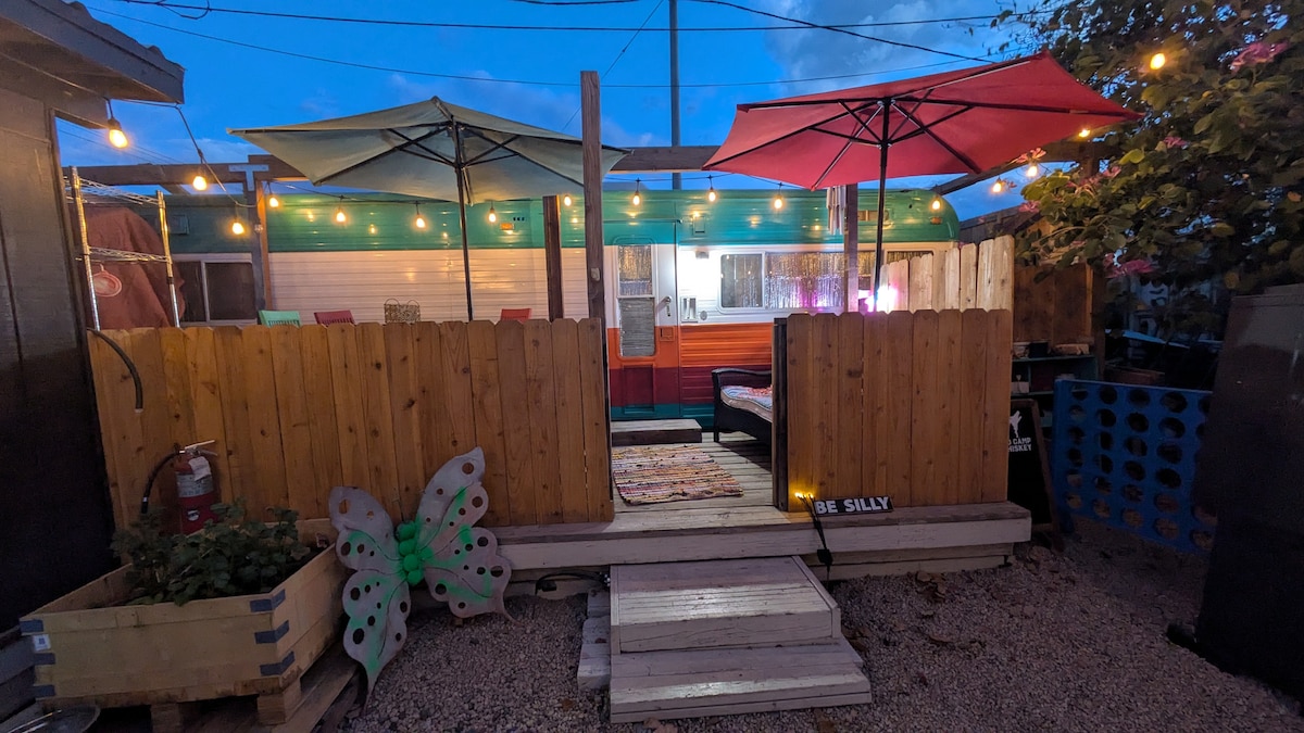 Experience tiny urban living in our renovated pet/420 friendly backyard space! Designed for max comfort, our guests are top priority! Full Bed: Cooling memory foam +adjustable massage bed = bliss 2 AC units, individual wifi, W/D in yard Kitchen: Mini fridge/freezer, induction stove, microwave, dishes, snacks, full fridge outside Bath: Full shower + bidet toilet Yard: Swings + hammocks + games = fun! Our pets are separate from guests & pets 🌈 Quaint historic, walk to bus & lightrail
