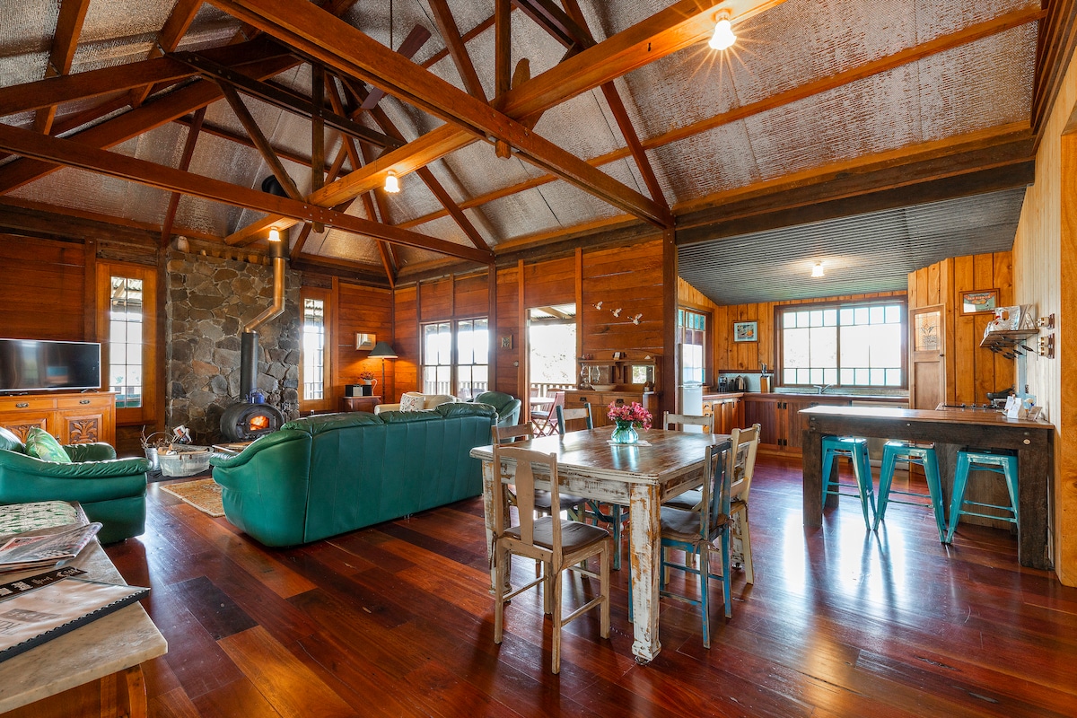 Belltree Ridge is an absolute treasure in a stunning location. It is an extremely unique hand crafted homestead built from reclaimed and local timber. It offers complete privacy and is just 11 kms from the township of Maleny. For winter comfort, a wood burning fireplace and for summer an outside fire-pit . We also have ducted air-conditioning and heating. We now have Starlink Wi-fi but will happily turn it off so guests can really disconnect from their busy lives.