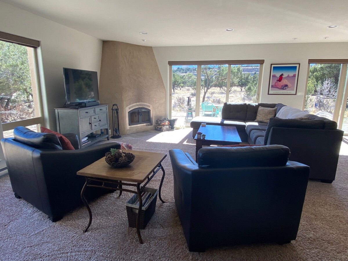 Come enjoy our private 5 acres of Pinon trees with the convenience of being 5 minutes from town. Enjoy the joys of children on property and views of incredible mountains with the wildlife that frequents our "back yard". Relax in our private guest area locked off from the rest of our home including a kitchenette and laundry area, all separated from the rest of the house by a custom built and locking doorway. We accept dogs but cannot accept cats due to other guests’ allergies. There is a pet fee.