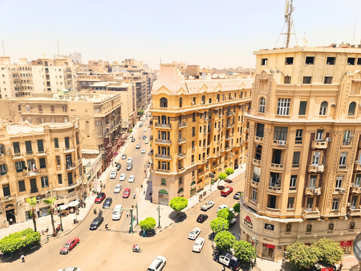 Your Luxurious Apartment in Cairo Downtown Retreat. Indulge in the beauty of Cairo from your private balcony. This elegant apartment offers breathtaking views of the iconic Mohamed Ali Citadel, the bustling Talat Harb Square, Egyptian museum and the historic downtown skyline. Inside, you'll find a stylishly furnished living space, a dining area, a fully equipped kitchen, and two comfortable bedrooms. Relax in the heart of Cairo, where ancient history meets modern luxury.