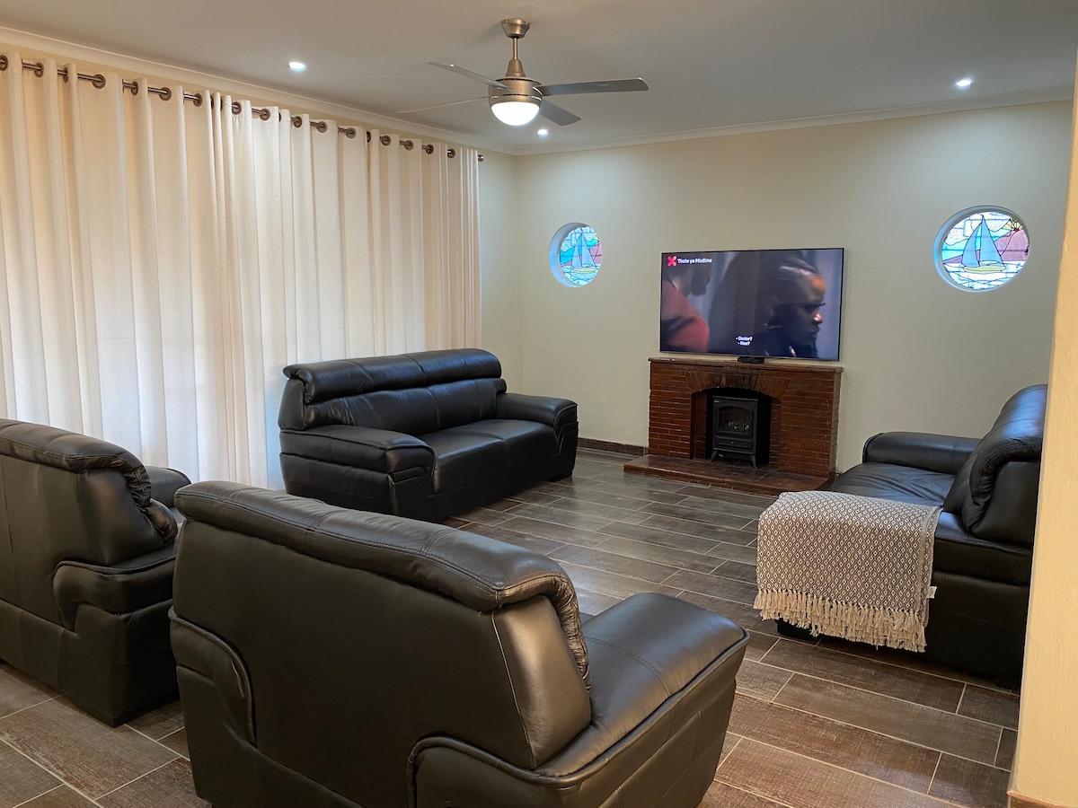 Enjoy a stylish stay in the heart of Bulawayo! This 2-bedroom apartment (sleeps 5) features 2 queen beds, a sofa bed, and a modern bathroom. Cook using a gas cooker, relax with hot water, and stay powered with backup solar. Unlimited, ultra-fast STARLINK WiFi — perfect for work, streaming, or gaming. FREE NETFLIX. Just a 5-min walk to Queen’s Sports Club, town centre and entertainment areas. UNFORTUNATELY, THERE IS NO SECURE PARKING ONSITE. THERE IS SECURE GUARDED PAID PARKING ($2/night) NEARBY