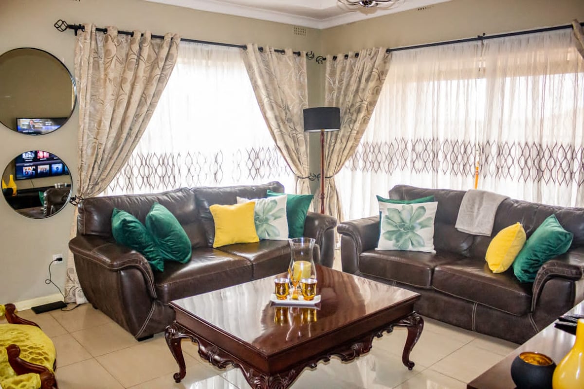 Cozy 4-bedroom home in a quiet Bulawayo neighborhood, just 15 minutes from city noise. Enjoy free Wi-Fi, Smart TVs, solar power, 24/7 borehole water, a full kitchen, spacious yard. With a huge outdoor entertainment area. Only 5 minutes from Nkulumani Mall—ideal for families, groups, business stays, or a relaxing getaway.