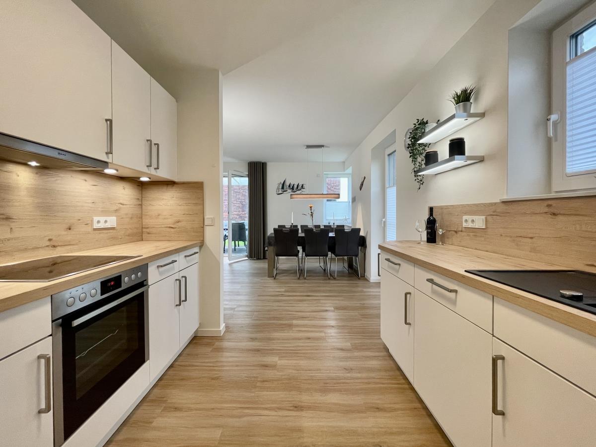 Ferienhaus mit Top-Ausstattung in Ruhiglage, 5 min zum Strand, 2021 komplett saniert, Terrasse und großer Garten, bis 5 Personen + Baby, familien- und seniorenfreundlich! Das Haus bietet 3 Schlafzimmer, ein geräumiges Wohnzimmer, einen lichtdurchfluteten Essbereich mit vorgelagerter Terrasse und Blick ins Grüne, eine moderne, vollausgestattete Küche, ein elegant gestaltetes Mini-Duschbad/WC sowie Flur und Abstellraum. WLAN 50Mbit/s, SAT-TV, Bücher, Spiele, Kinderspielzeug und Fahrräder inkl.