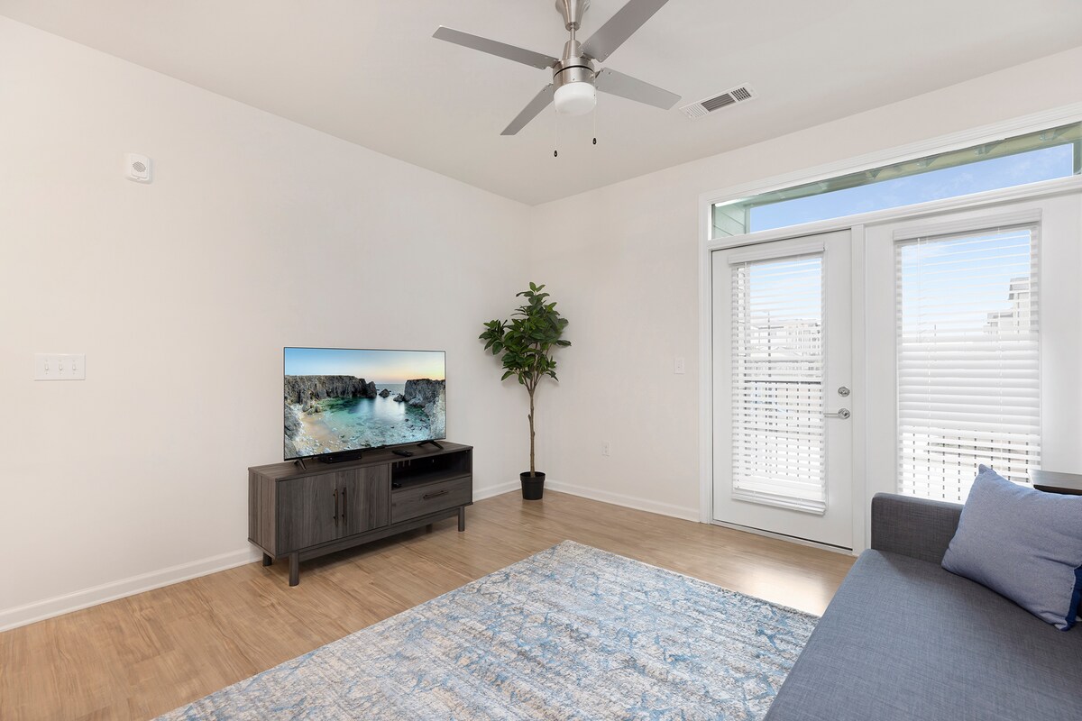 Quiet, thoughtfully lived-in 2-bedroom, 2-bath apartment designed for comfortable long stays. Features a king-size bed, large closet, private balcony, and a fully equipped office for remote work. Located near Trader Joe’s and Starbucks, with access to a great gym, yoga room, and shared lounge. A peaceful, nature-adjacent home—this is a real apartment, not a typical Airbnb.