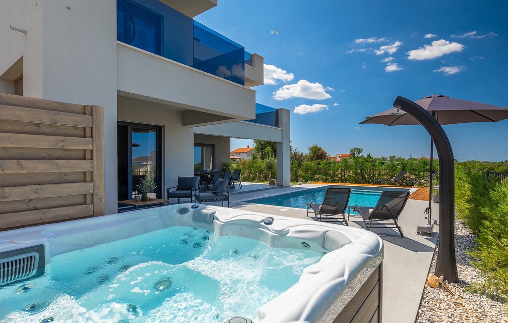 Discover paradise at Sky Pool Villa in Medveja, Croatia! This 2020-built luxury villa, set amid lush greenery, boasts a heated infinity pool with breathtaking Gulf of Quarnaro views. Indulge in the hot tub, sauna, and alfresco BBQ dining on the expansive terrace and private garden. Inside, enjoy a state-of-the-art kitchen, cozy living room with a 70-inch HDTV, and two elegant bedrooms. Every moment here promises tranquility and unforgettable memories. Book now for the ultimate escape!