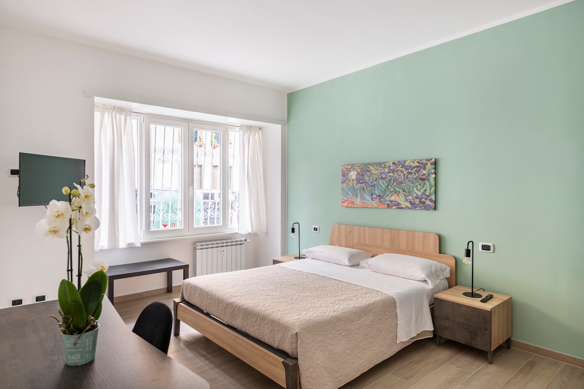 Situata nel quartiere San Giovanni di Roma, a pochi passi dalla metro (Linea A - San Giovanni/Re di Roma e Linea C - Lodi) e dalla maestosa Basilica, questa suite è ideale per amanti del comfort che desiderano un soggiorno full optional e non vogliono rinunciare al design. L’appartamento, completamente nuovo ed arredato finemente, è composto da una zona giorno con divano-letto e cucina attrezzata, camera da letto matrimoniale e bagno. Gli ambienti sono dotati di climatizzazione e Wi-Fi.