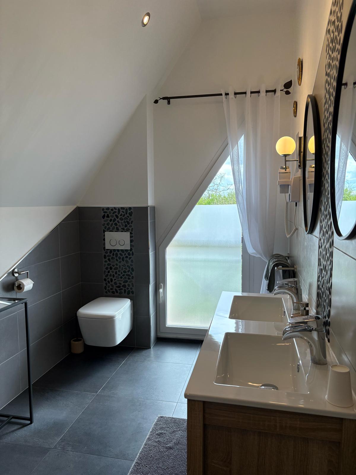 Beautiful outbuilding in a pretty Normandy property with a one hectare park, located 2 km from the sea near Cabourg. The perfect place to recharge and rest. On the first floor a master suite comprising a bedroom with a queen size bed, a living room with a high-end sofa bed, a bathroom with walk-in shower and separate toilet. On the ground floor a 50m2 room with an equipped kitchen, a dining room and a living room.