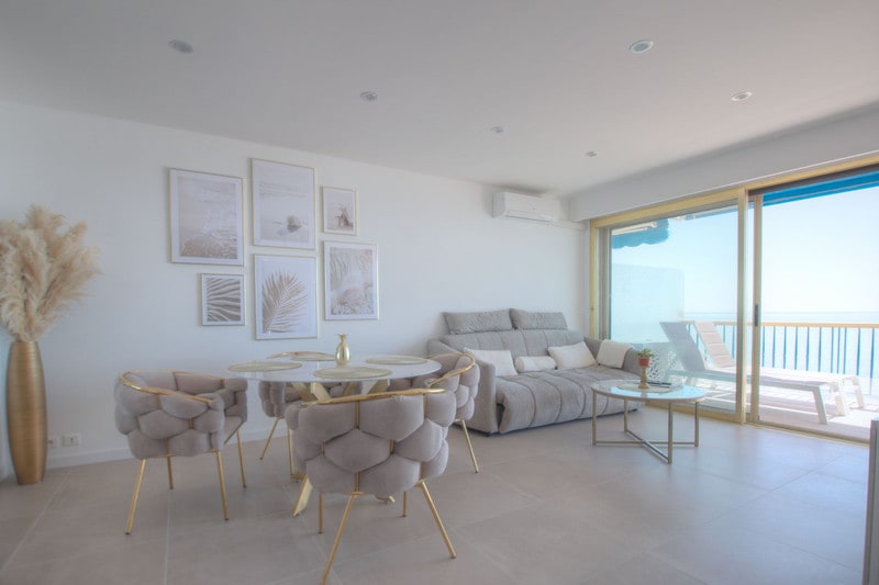 This beachfront cocooning apartment, perfect for couples, offers soothing sea views. The apartment is an 8-minute drive from the airport and a 10-minute walk from the Cagnes-sur-Mer racecourse and local shops. It combines comfort and tranquility. The bright living room has a premium sofa bed and a flat-screen TV. The equipped kitchen includes a dishwasher and Nespresso coffee machine. No cleaning fees.