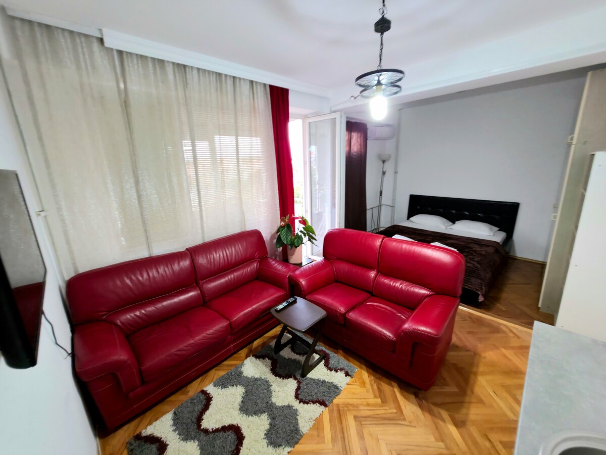 Welcome to your perfect home away from home! This charming one-bedroom apartment offers a cozy retreat with all the comforts you need for a relaxing stay. Nestled in one of the oldest neighborhood in Skopje, the space features a spacious living and bedroom area with modern amenities, and a fully equipped kitchen. Whether you’re here for business or leisure, enjoy a peaceful, stylish setting in just 10 minutes walk to the Old Bazaar and 5 minutes walk to the biggest mall-East Gate!